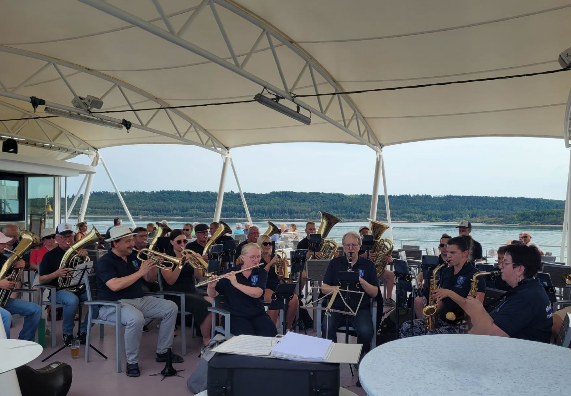 Während die Ausflügler die Aussicht und das sonnige Wetter auf dem Deck genossen, sorgte der Musikverein Hettingen für die musikalische Umrahmung an Bord. Mit schwungvollen Polkas, Märschen und modernen Stücken unterhielten die Musikerinnen und Musiker das Publikum, das die Darbietung mit begeistertem Applaus honorierte. Die gelungene Verbindung von Naturerlebnis und Live-Musik wird sicher allen Mitfahrenden in bester Erinnerung bleiben.